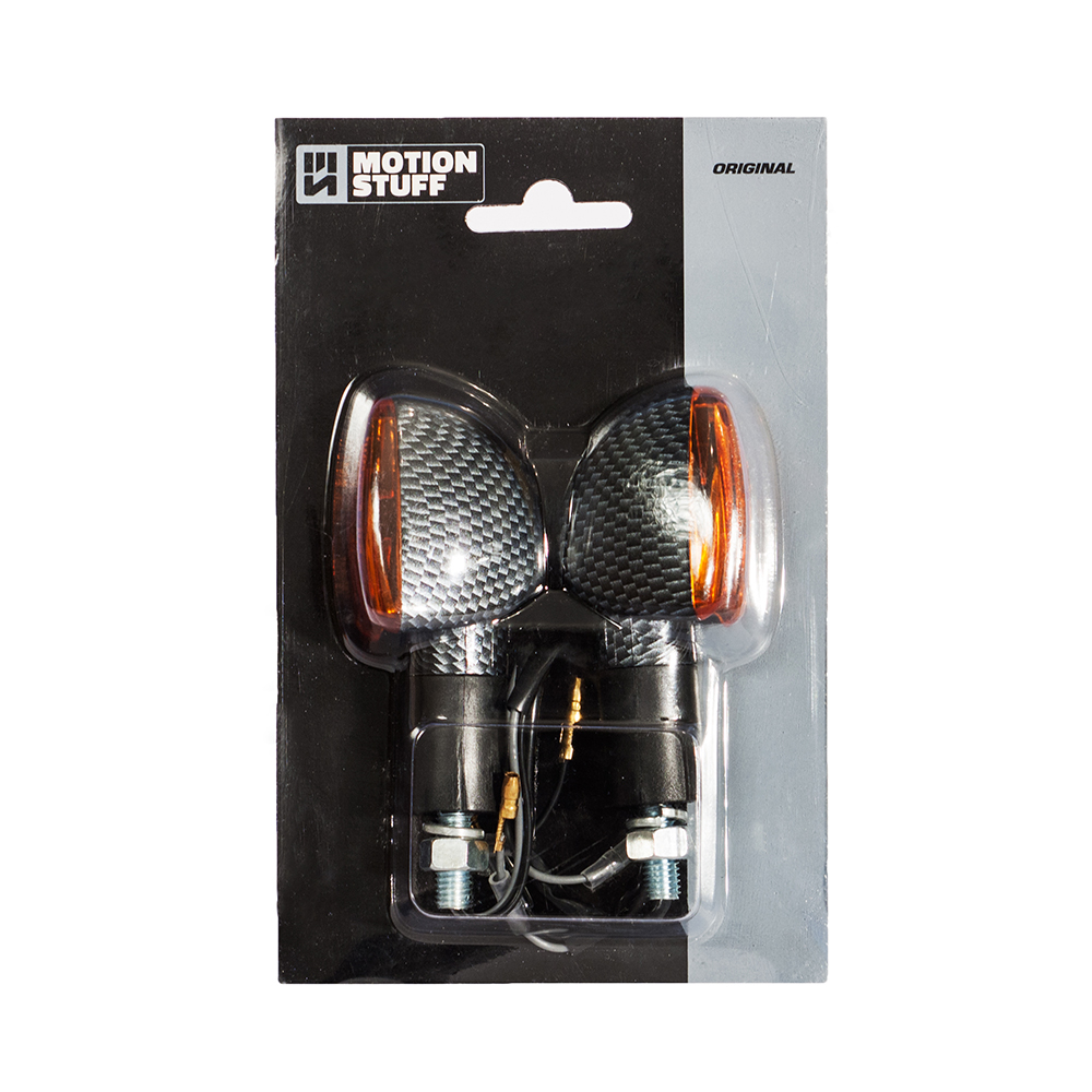 Carbon with orange lens, long stem, gas-filled bulb, E-mark, pair of 2