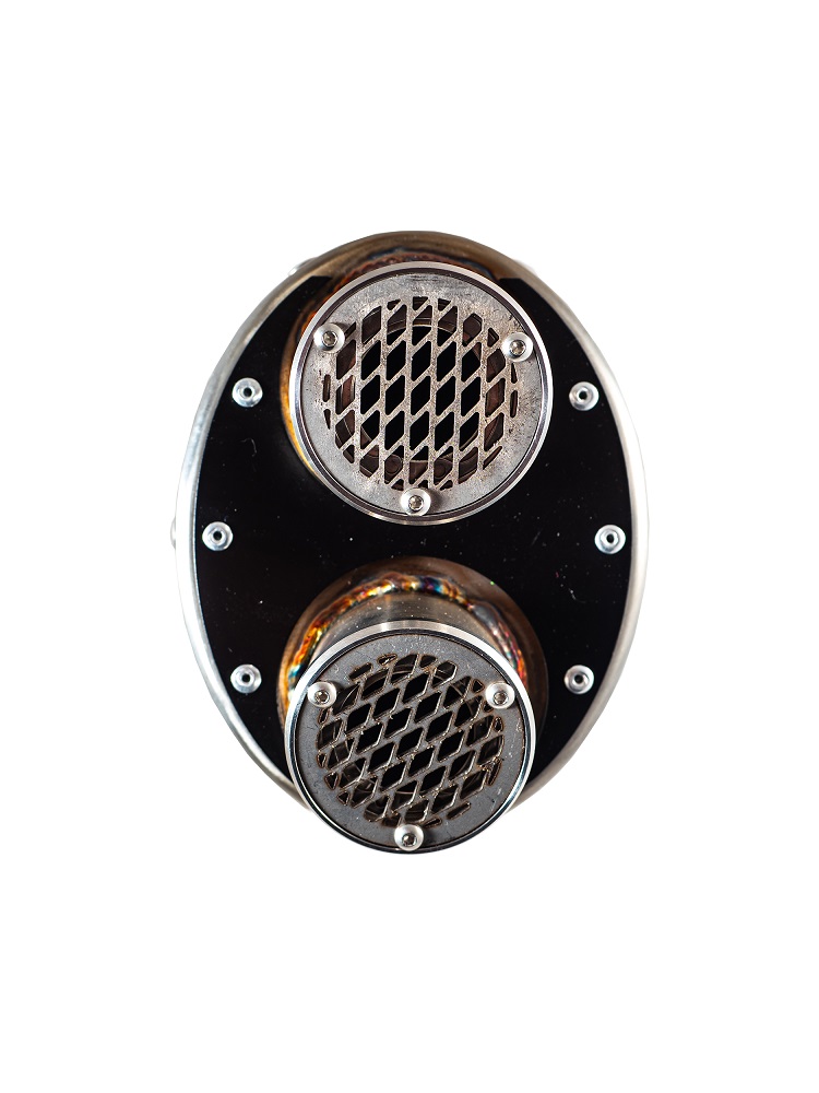 GPR developed the Dual Inox series after the victories in the Moto3 World Championship. The Dual Inox exhaust has a removable racing grill with CNC-machined bottoms. It is made of hand-brushed stainless steel with an oval shape, and a diameter of 100 MM.