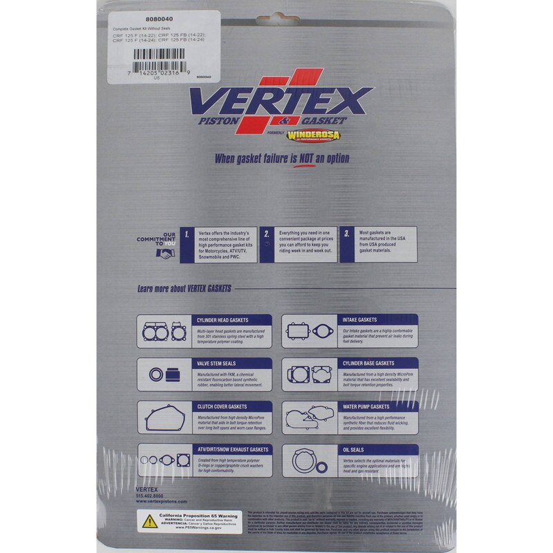 Vertex Complete Gasket Kit Without Seals, ea, 1