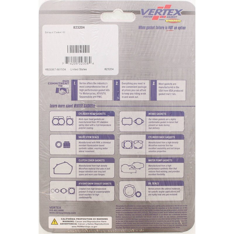 Vertex Exhaust Gasket Kit, ea, 1