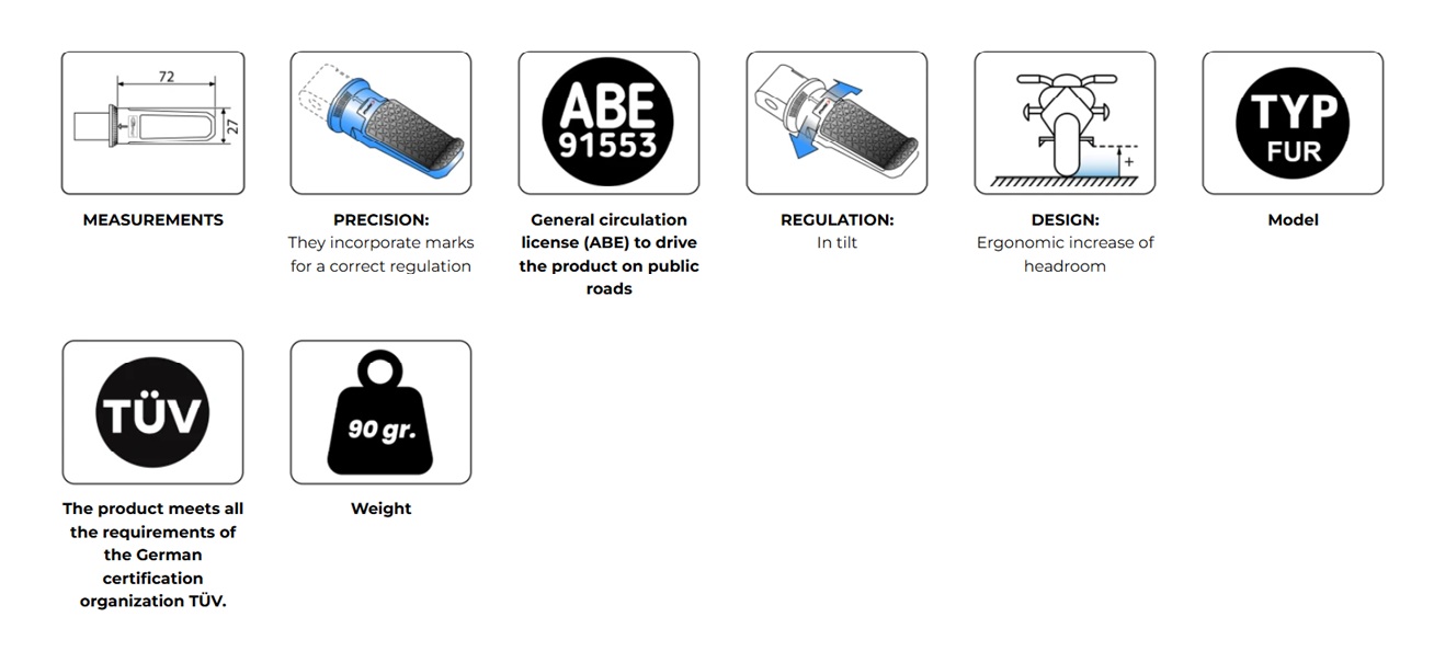 Footpegs without adapters PUIG SPORT 7318Y titan with rubber