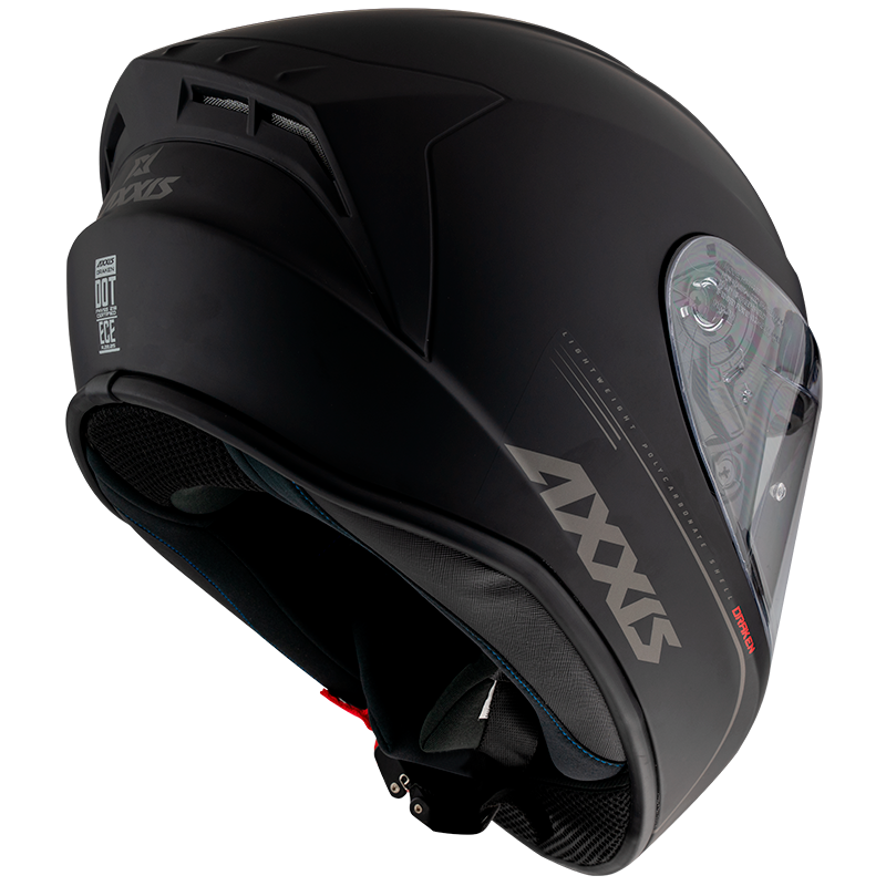The Axxis Draken helmet has an ECE, DOT injected thermoplastic shell. Front and rear air intake system, removable and washable interior pads. UV protection visor. The full-face helmet for use both in the city and on the road.