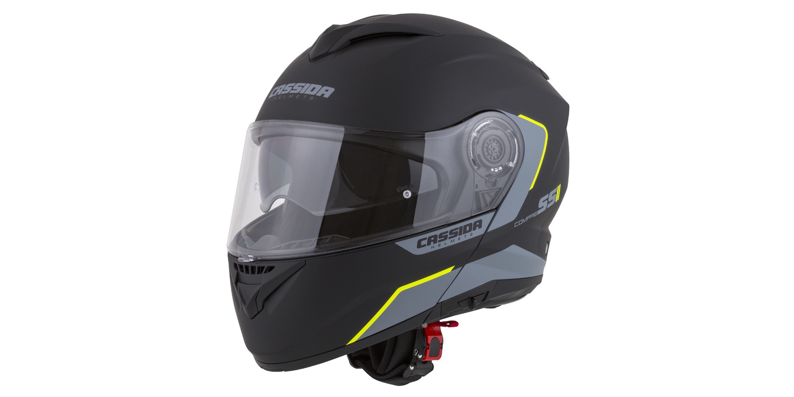 Full face helmet CASSIDA COMPRESS 2.0 REFRACTION matt black / grey / yellow fluo XS