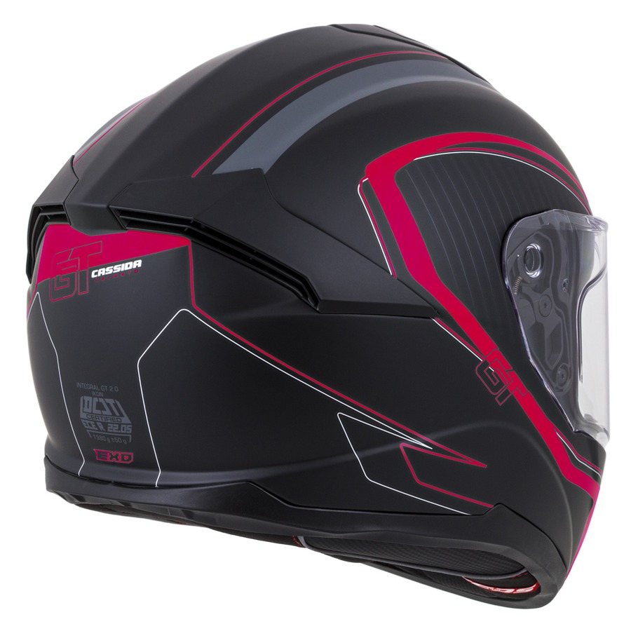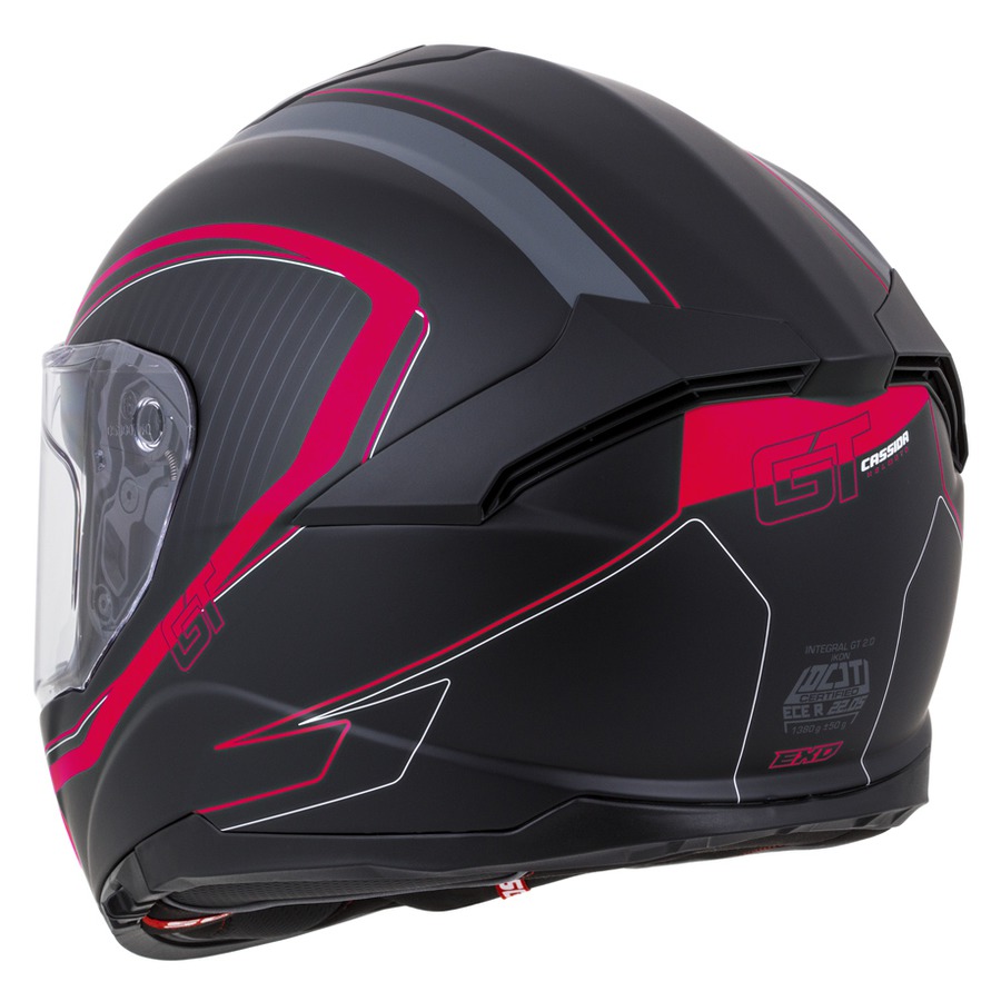 Integral GT 2.0 helmet is sport/touring model which is offering helmet with fibreglass shell and standards with details available for upper mid class range of helmets. Fibreglass shell, bluetooth ready and comfortable liner with soft microfibre collar which hug head in neck area is also equiped Cassida Safety Opening System (Cassida SOS). Clear Pinlock® antifog lense type 70 Max Vision® is included in package together with helmet. Name of helmet refer to name of original Cassida helmets model from 80´s in combinations with features of design, details and standards which meets modern upper mid class motorcycle helmets with fibreglass shell.