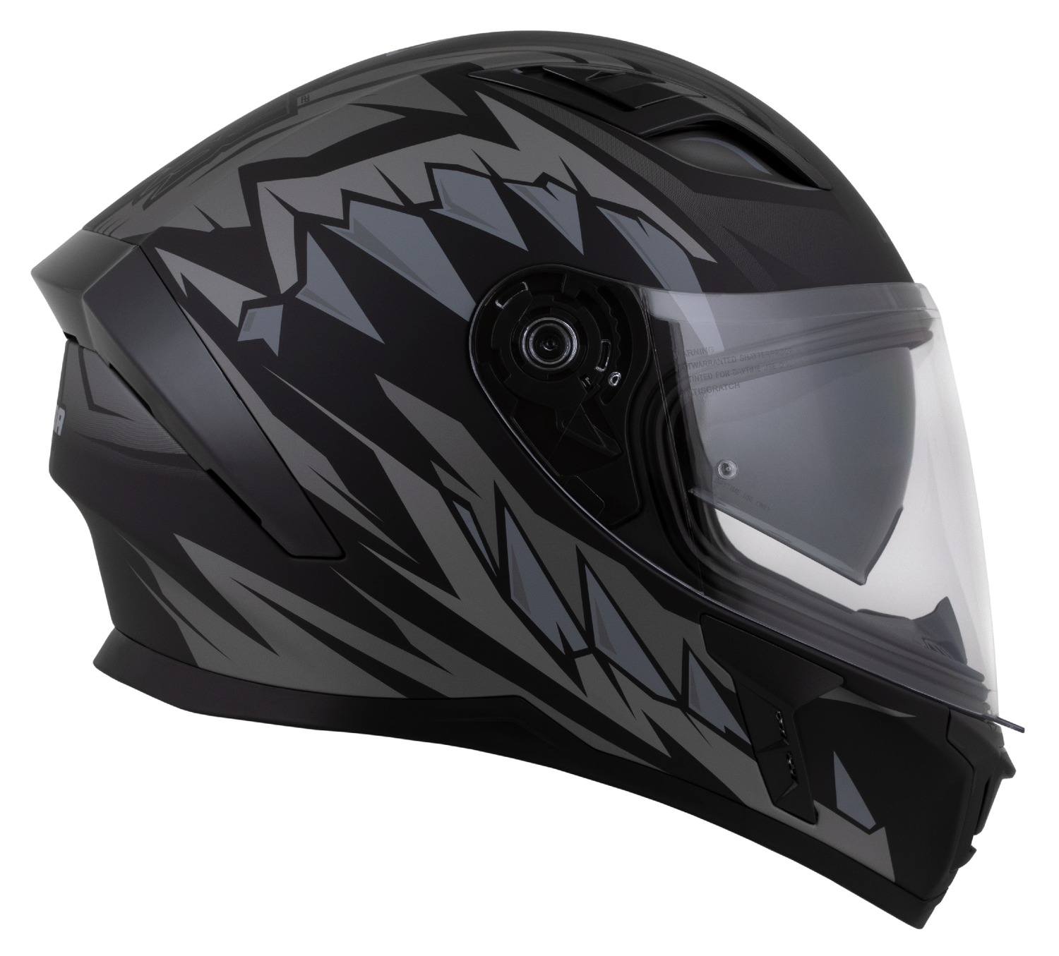 - Quick-release visor mechanism with multiple position settings and a locking tab to secure the visor in the closed position