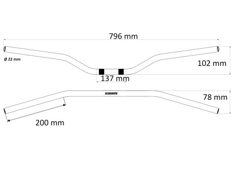 Technical Specifics: Diameter: 22 mm - Lenght:796 mm - Height:102 mm - Central Part Length:137 mm - Inclination:78 mm -Raw Material: Aluminium.