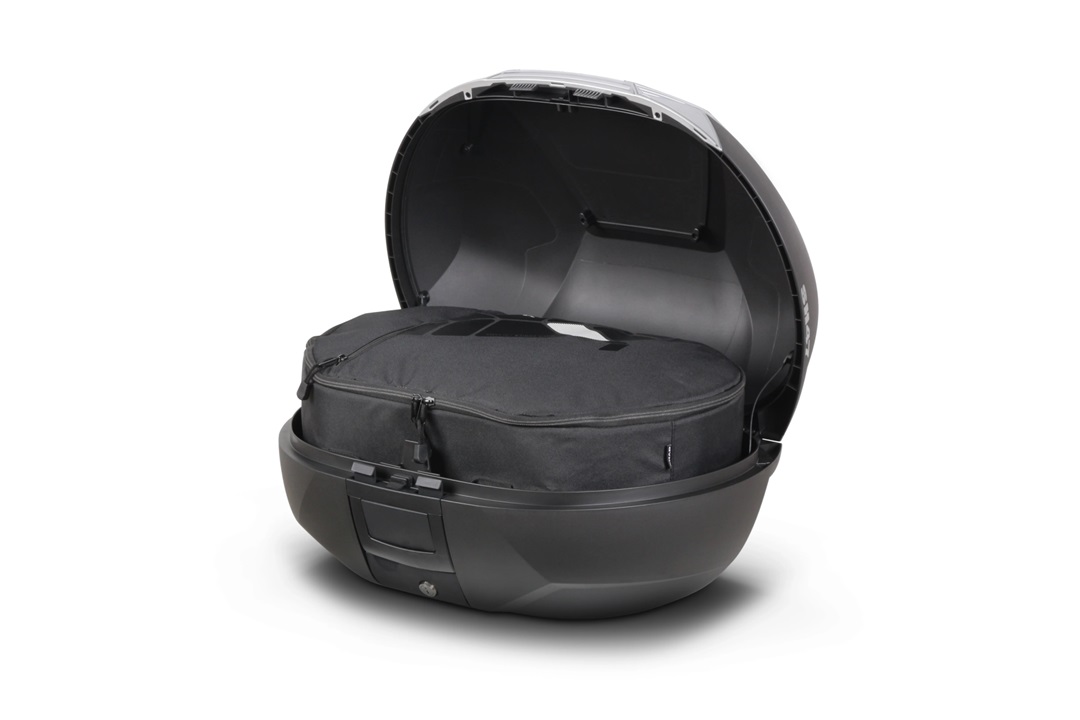 It complements the top case and can be adapted to several top and side cases. It is made in high quality materials. It is perfect to carry whatever you need in the most comfortable way. The inner bag makes carrying your belongings easier, as you can put everything inside it and then just take it out and carry it anywhere you need. It has a zipper and a front pocket, a side handle and a shoulder strap to carry it.