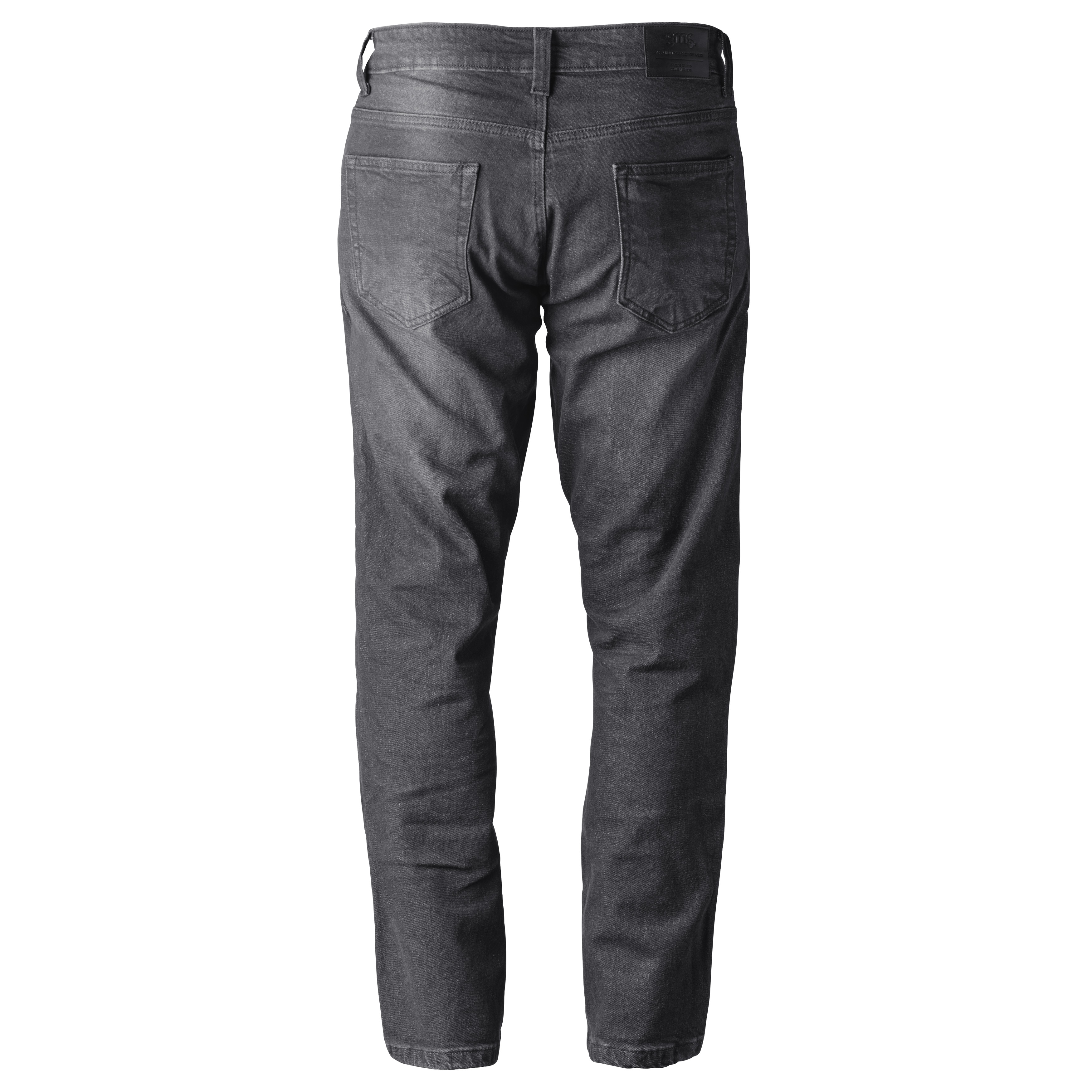 Modern motorcycle jeans featuring Kevlar reinforcements, CE‑certified knee and hip protection, and a sleek black design for safe riding every day!