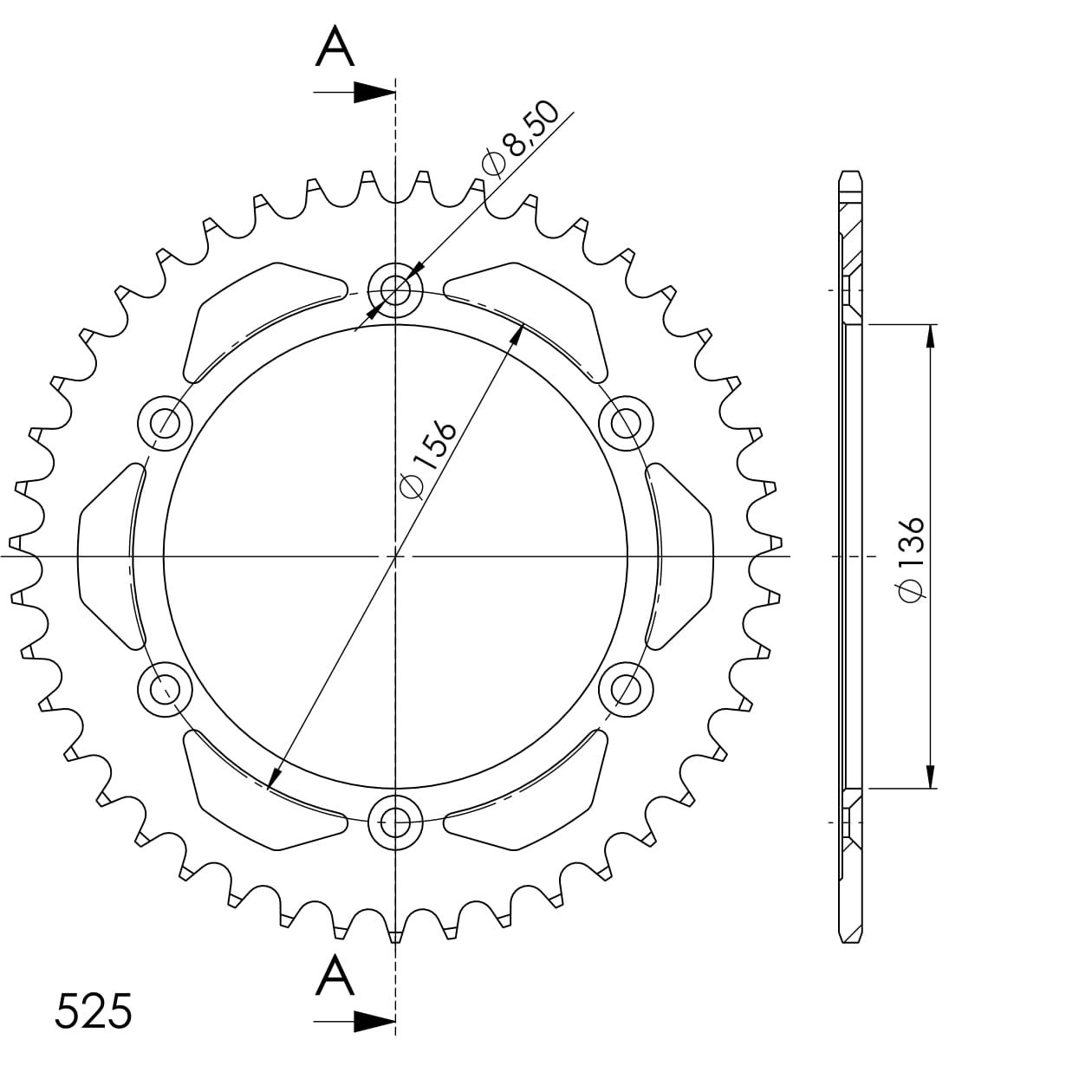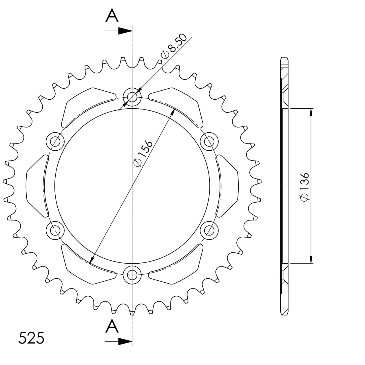 Stronger teeth for up to 10% longer chainkit lifetime. Rear sprocket 43z, chain 525.