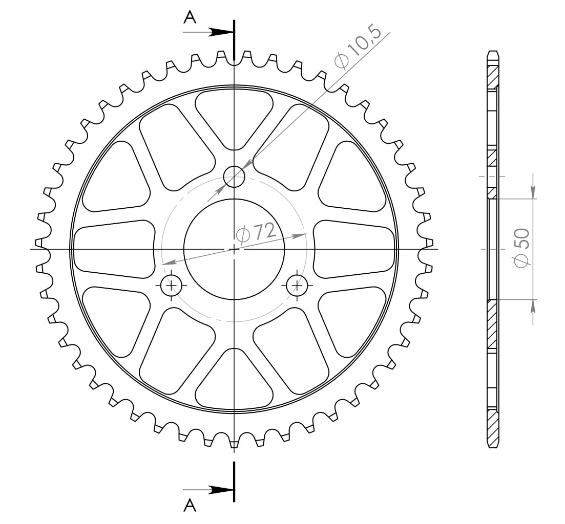 Stronger teeth for up to 10% longer chainkit lifetime. Rear sprocket 47z, chain 420.