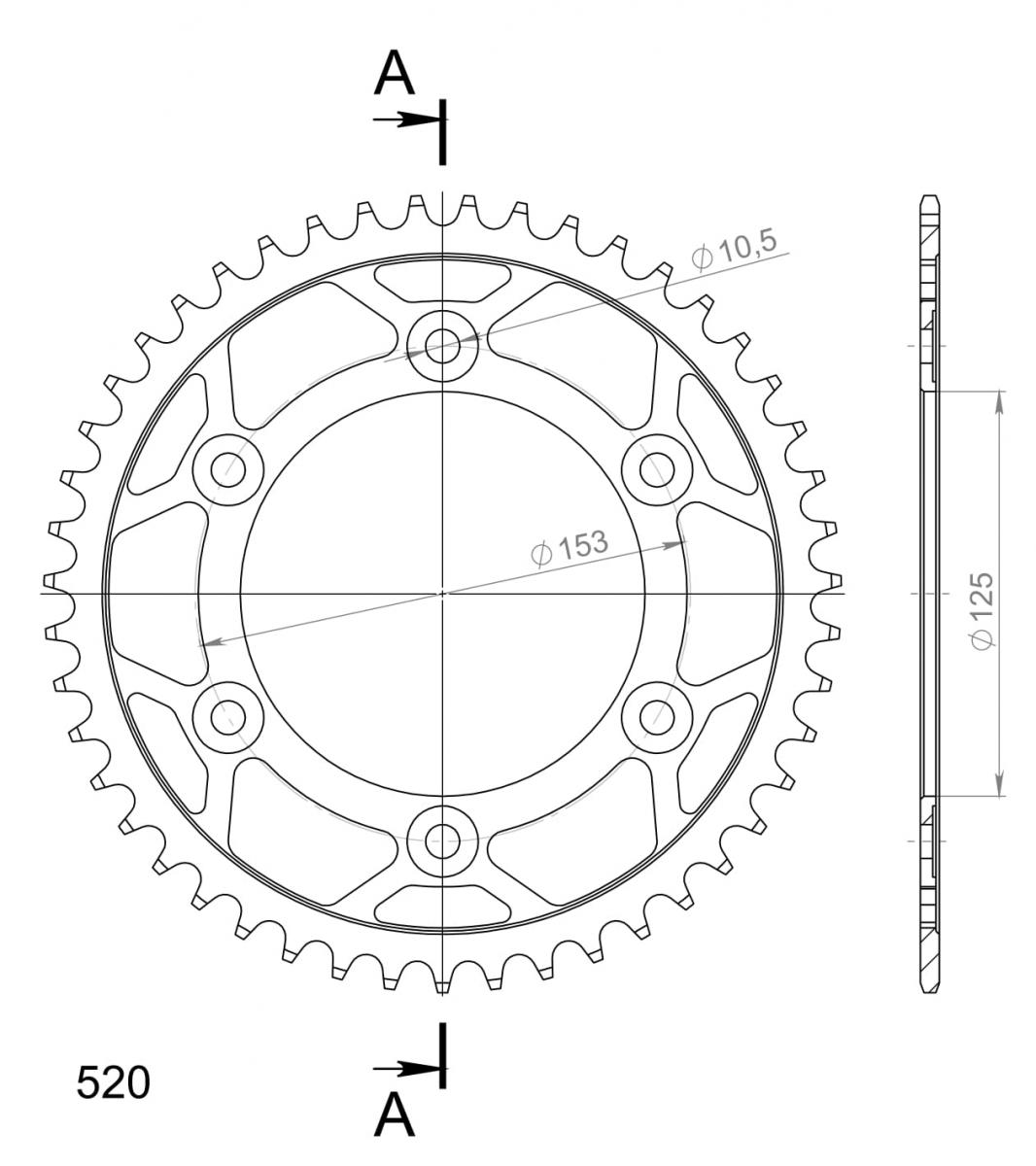 Lančenik zadnji SUPERSPROX RFE-301:47-BLK Crni 47T, 520