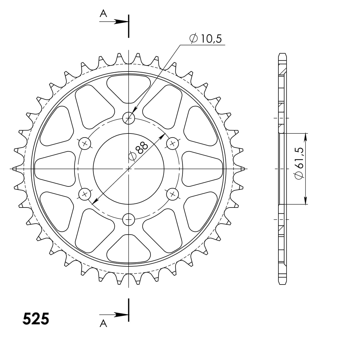 Lančenik zadnji SUPERSPROX RFE-319:38-BLK Crni 38T, 525