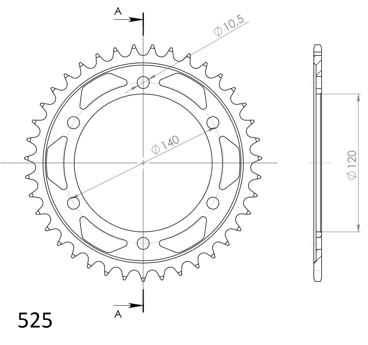 Stronger teeth for up to 10% longer chainkit lifetime. Rear sprocket 39z, chain 525.