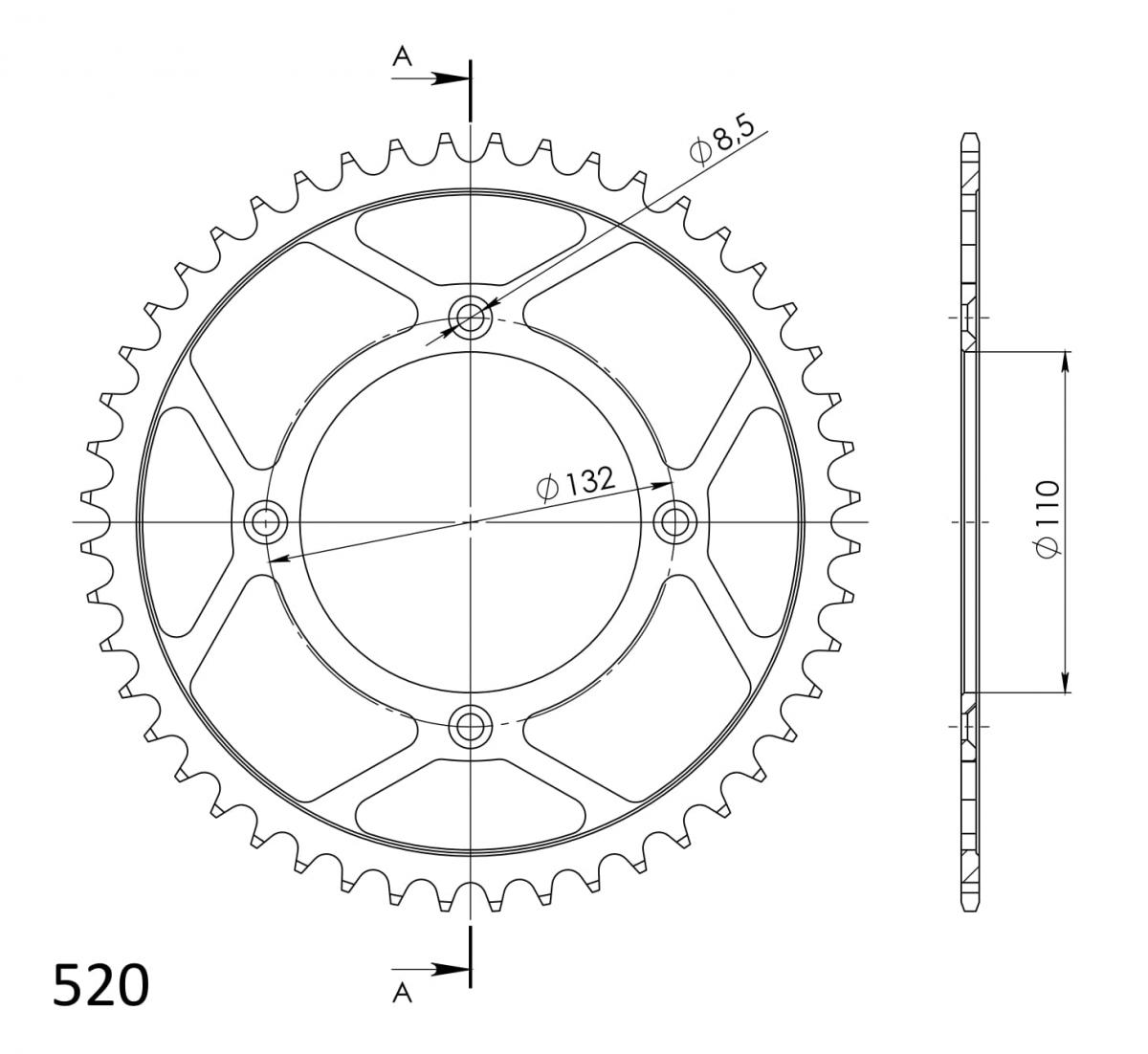 Lančenik zadnji SUPERSPROX RFE-720:48-BLK Crni 48T, 520
