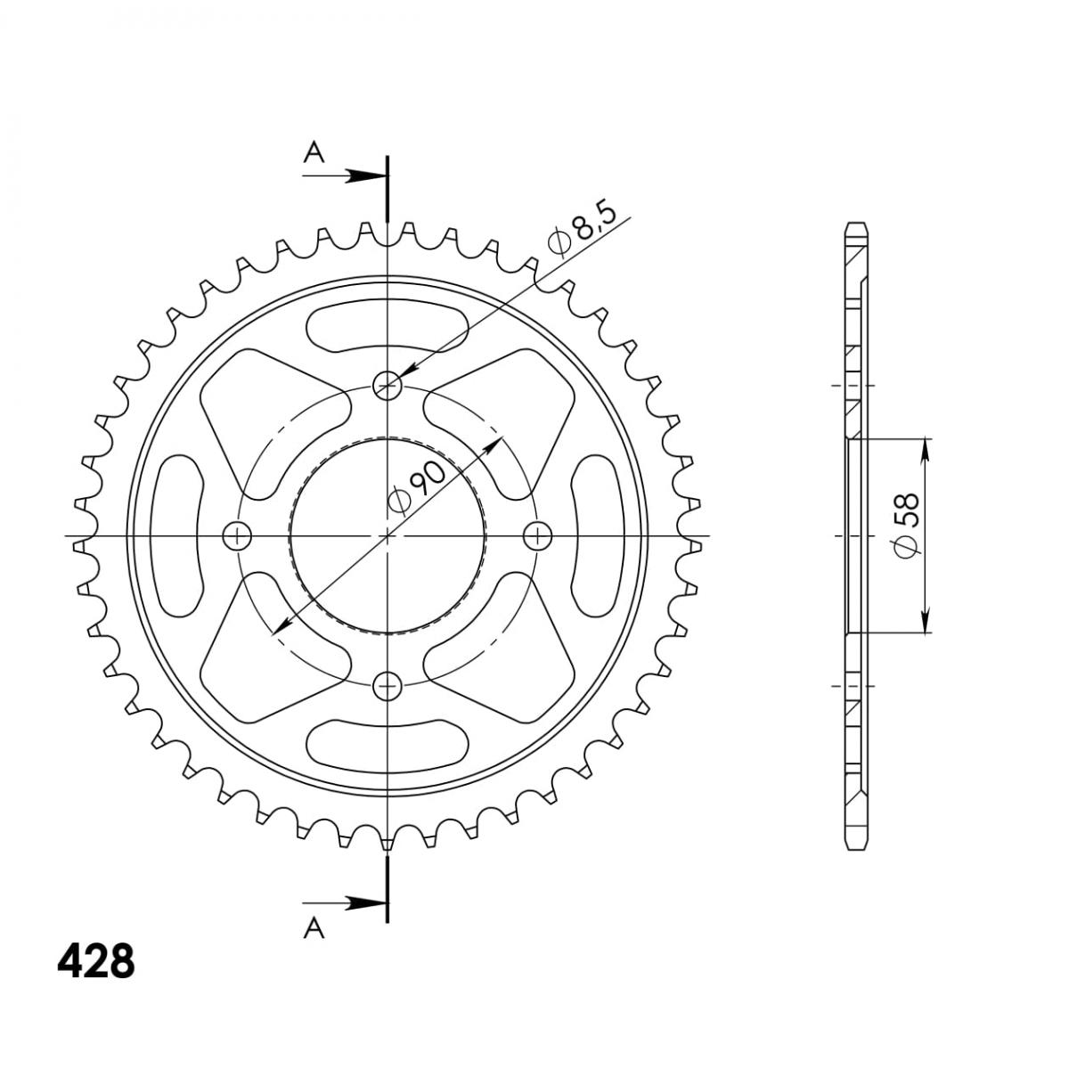 Lančenik zadnji SUPERSPROX RFE-803:45-BLK Crni 45T, 428