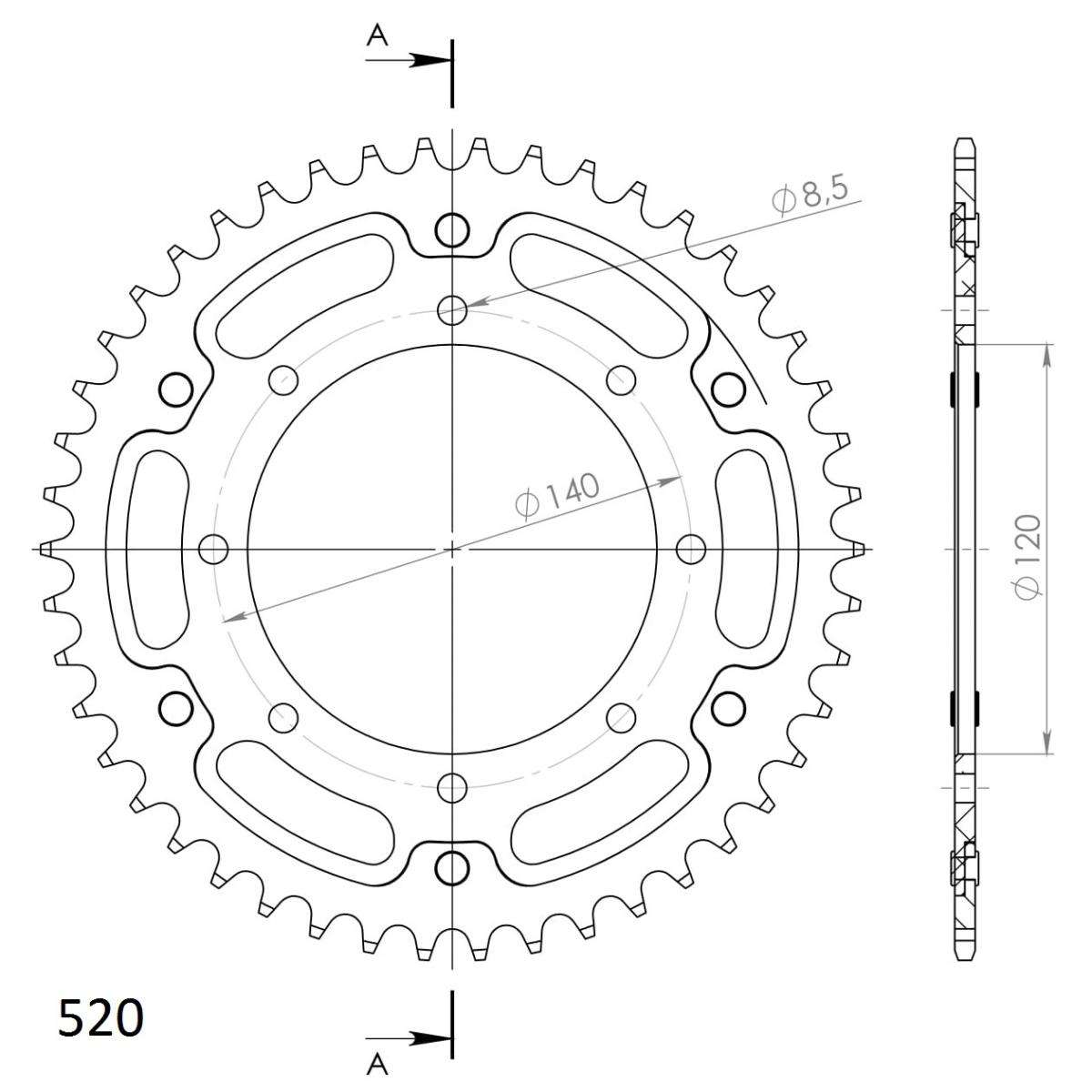 Patented Supersprox longlife/lightweight solution with strongest bond on the market. 3-times longer lifetime than TOP quality aluminium sprocket.