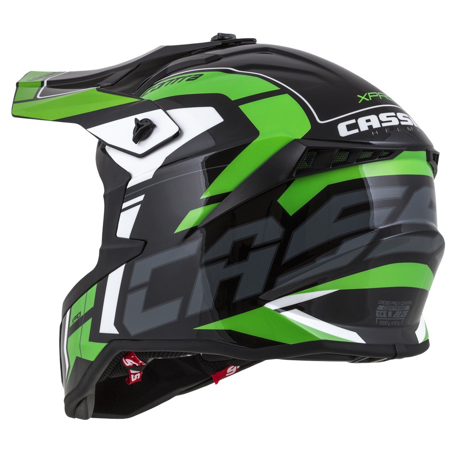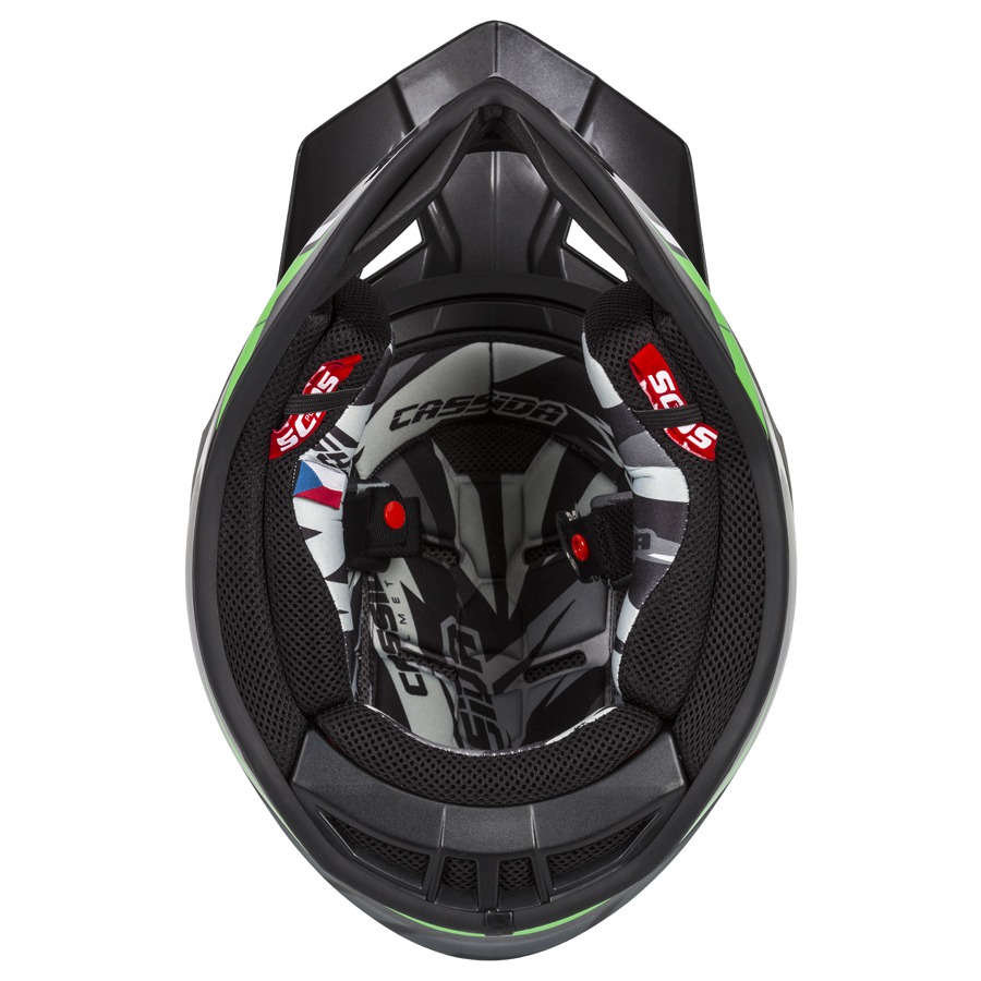 Cross Pro II helmet is successor of previous model which is released in Contra design line for season 2020. Fibreglass shell, adjustable peak with side alloy screws and top plastic screw for possibility of gentle shut down of peak during contact with ground. Inner lining is equiped by Cassida Safety Opening System (Cassida SOS) as the first model in Cassida helmets collection and printed design spice up whole lining. Easy to wash surface of interior of helmet and chin vent with carbon dust filter insert included in are details complementing whole product.