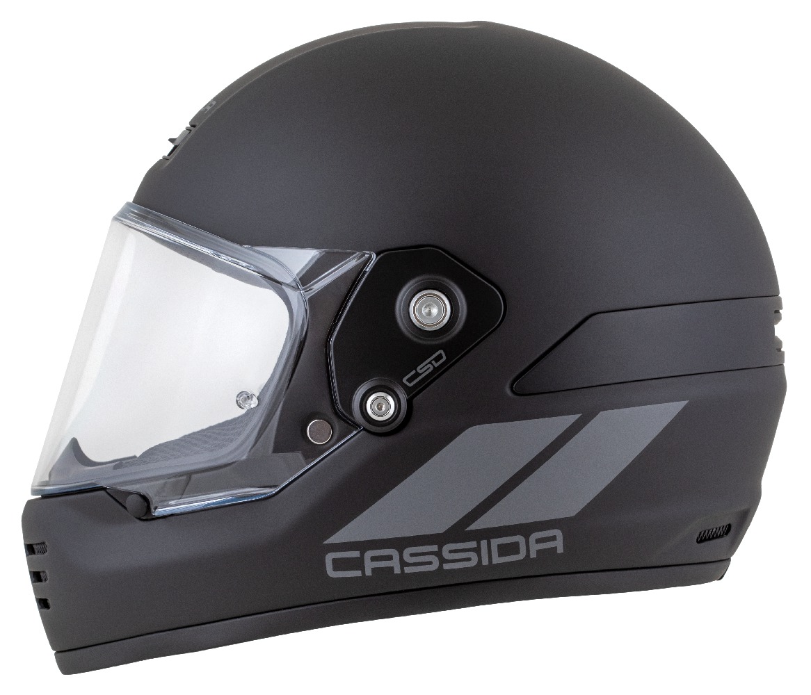 Its neo-retro design is complemented by modern materials and features such as a non-slip, breathable comfort liner, speaker pockets for wireless communicators, premium CASSIDA HELMETS packaging, and a visor prepared for the Pinlock® 70 anti-fog insert.