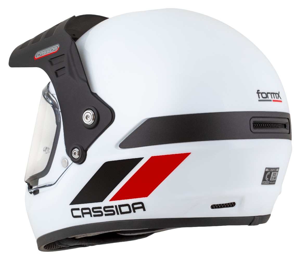 Its neo-retro design is complemented by modern materials and features such as a non-slip, breathable comfort liner, speaker pockets for wireless communicators, premium CASSIDA HELMETS packaging, and a visor prepared for the Pinlock® 70 anti-fog insert.