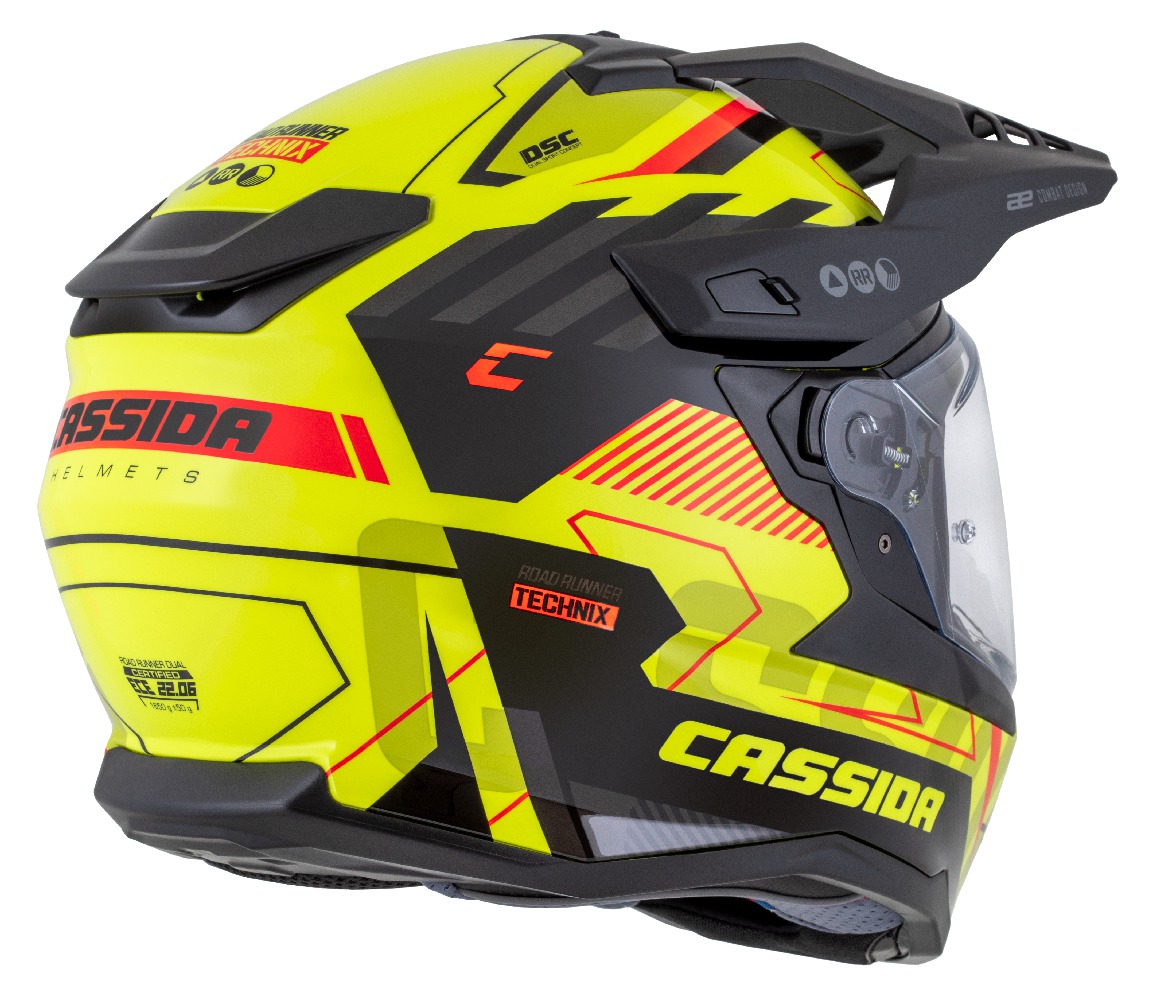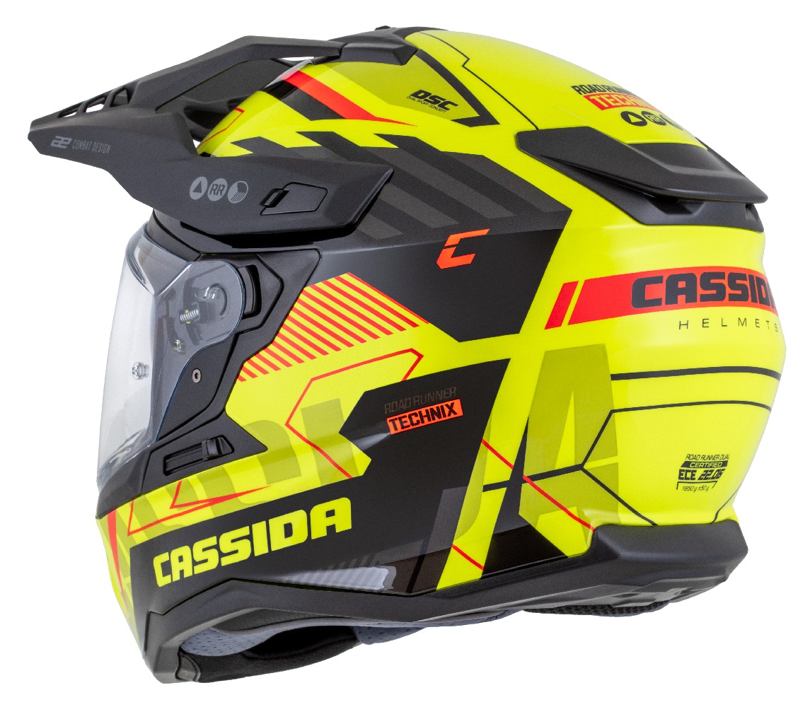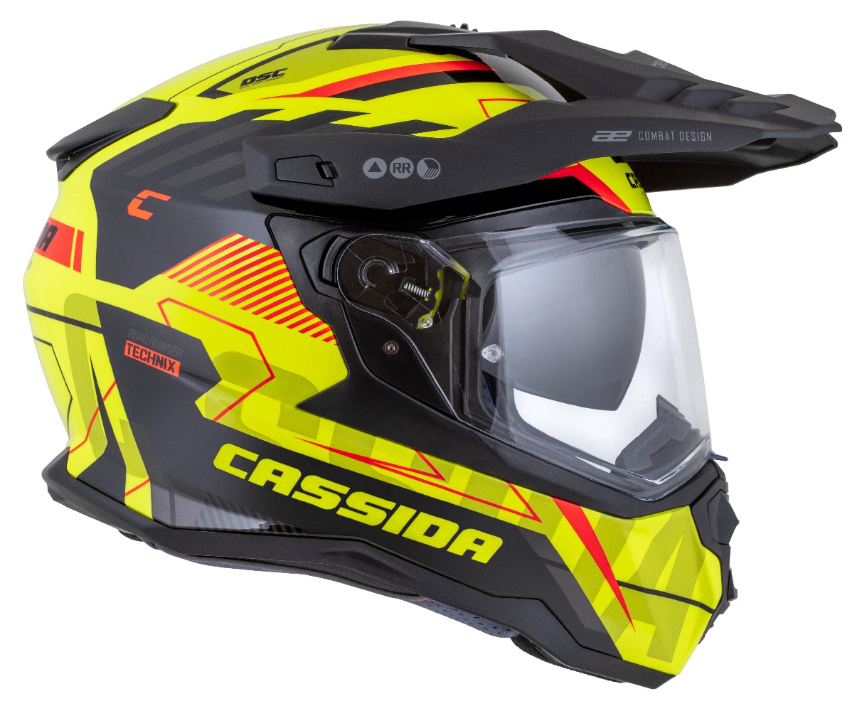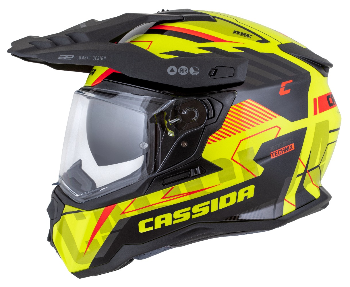 Motocross Helmet CASSIDA ROAD RUNNER TechniX yellow fluo/ black/ orange/ grey/ black matt peak M