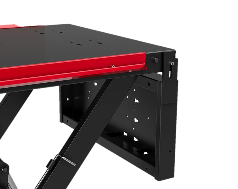 The platform of the Goldrake 800 Split is provided with front split for the disassembly of front wheels and suspensions, removable gate for rear wheels, tools holders kit and set-up for fitting wheel clamps and antiskid central covers.