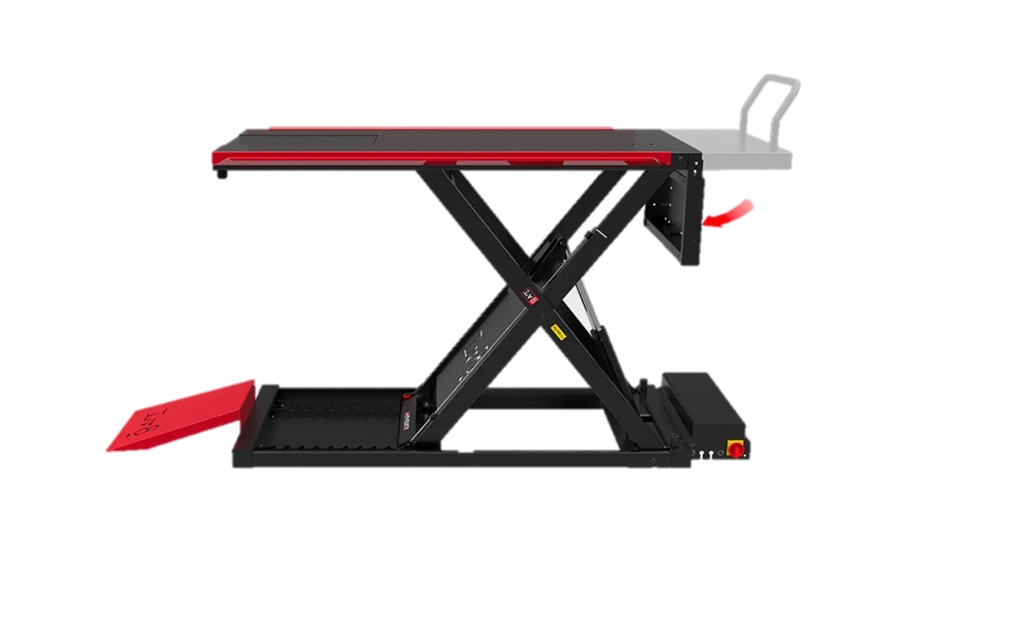The Goldrake 800 Split motorcycle lift, designed and produced i LV8, is able to fully lift 800 kg up to a height of 130 cm. It is equipped with front split system for easy disassembly of wheels and suspensions.
