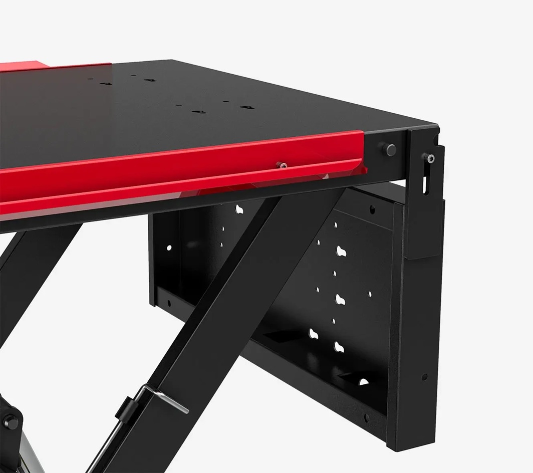The platform of the Goldrake 800 Split is provided with front split for the disassembly of front wheels and suspensions, removable gate for rear wheels, tools holders kit and set-up for fitting wheel clamps and antiskid central covers.