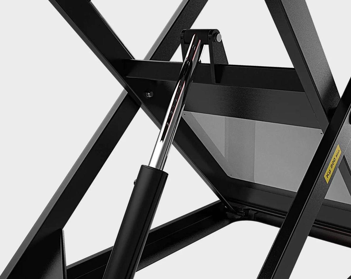 Our LV8 Goldrake lifts are equipped with a hydraulic cylinder, having a self-lubricating system of the seals and a mechanical lever with manual insertion, ensuring pre-set parking positions for total operator safety.
