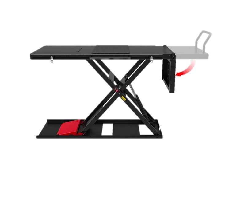 The Nano 600 Split (also in ground version) motorcycle lift designed and produced in LV8, thanks to its being only 7,5 cm (3”) high when closed and its retractable ramp it is the lowest and most safe motorcycle lift in the world. It is provided with front split system for easy disassembly of wheels and suspensions.