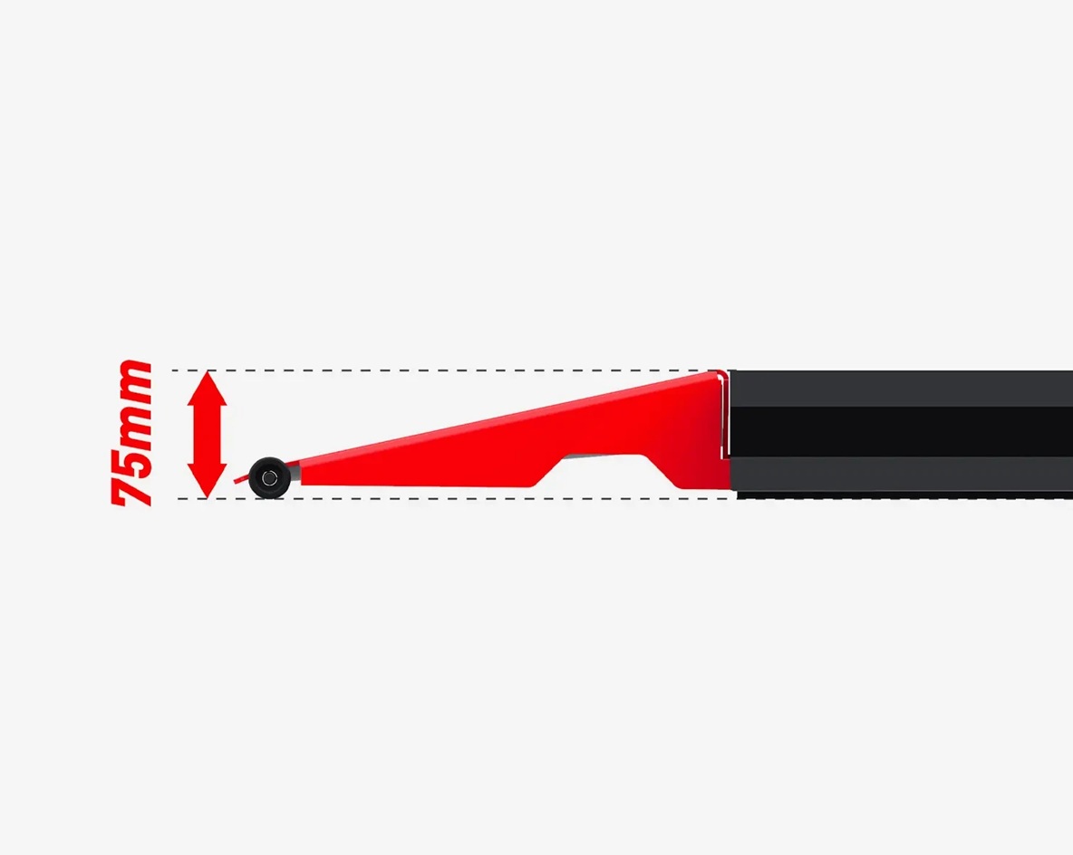 The motorcycle lift LV8 NANO is equipped with retractable run-up ramp to ensure a safe, ergonomic workstation, free of any obstacle on the floor, speeding up the maintenance operations on the vehicle. When the lift goes up the ramp runs smootly and silently and disappears inside the basement.