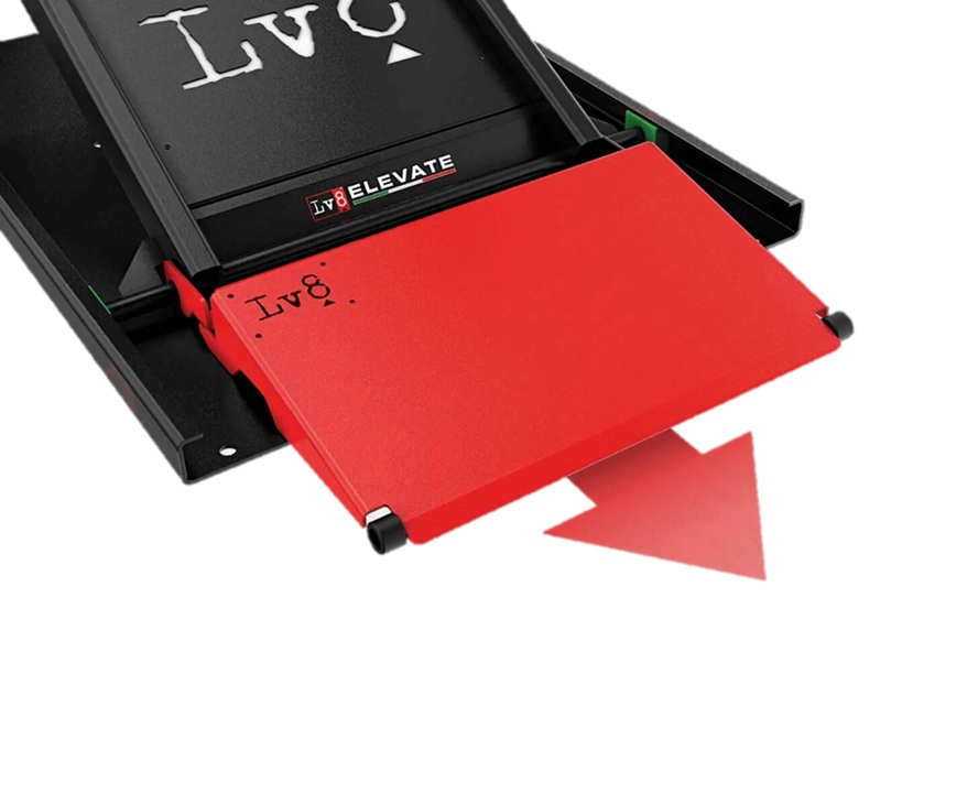 The hydraulic system with double cylinder equipped with a self- lubricating system for the seals allows infinite height adjustments of the LV8 NANO motorcycle lift ensuring the best reliability both when going up and down, without having to manually insert or release mechanical levers.