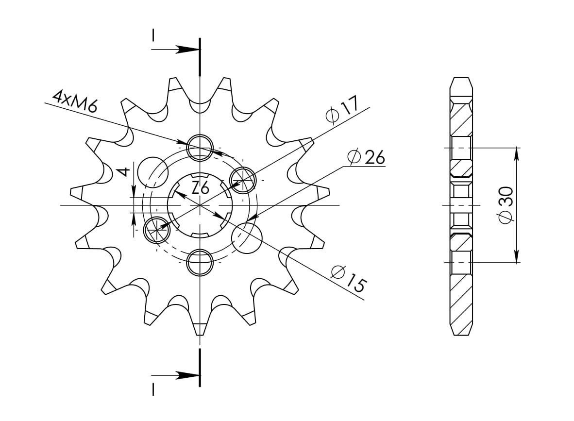 Every sprocket has weight reduction, with radial holes or radial slots (Forged models only) .