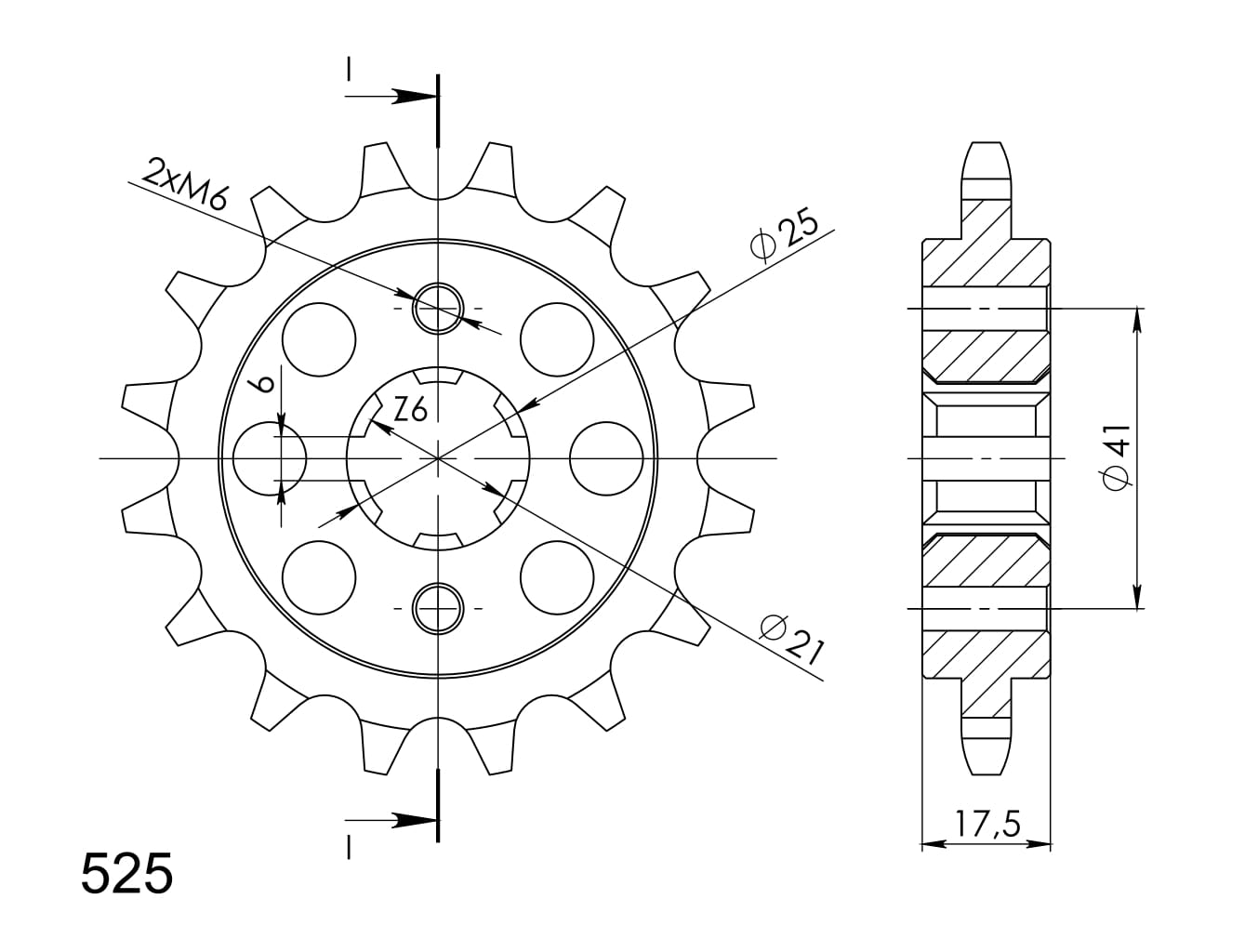 Stronger teeth for up to 10% longer chain kit lifetime. Front sprocket 14T, chain 525.