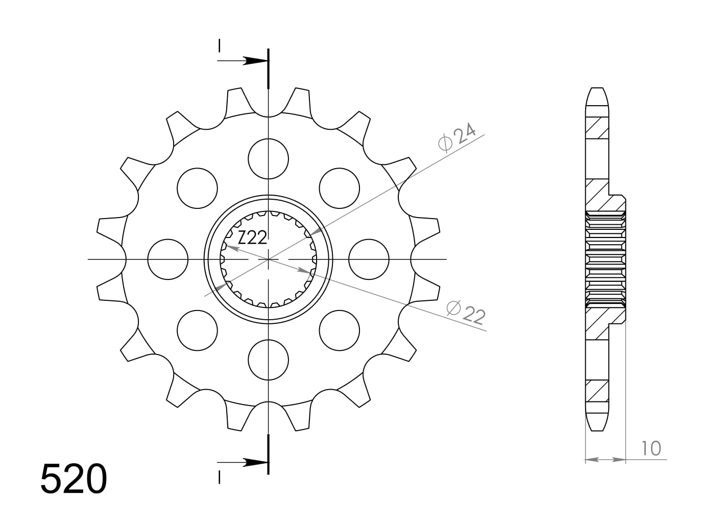 Every sprocket has weight reduction, with radial holes or radial slots (Forged models only) .