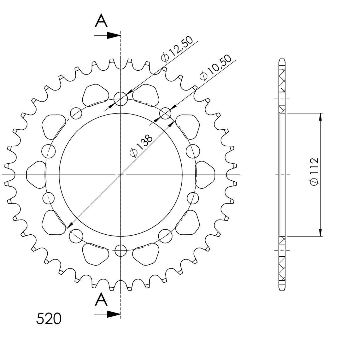 TOP quality 7075-T6 aluminium sprocket with stronger teeth to extend chainkit lifetime.