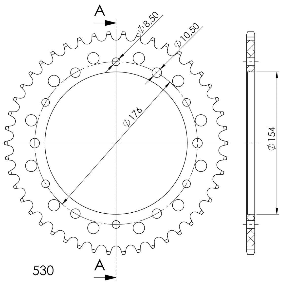 TOP quality 7075-T6 aluminium sprocket with stronger teeth to extend chainkit lifetime.