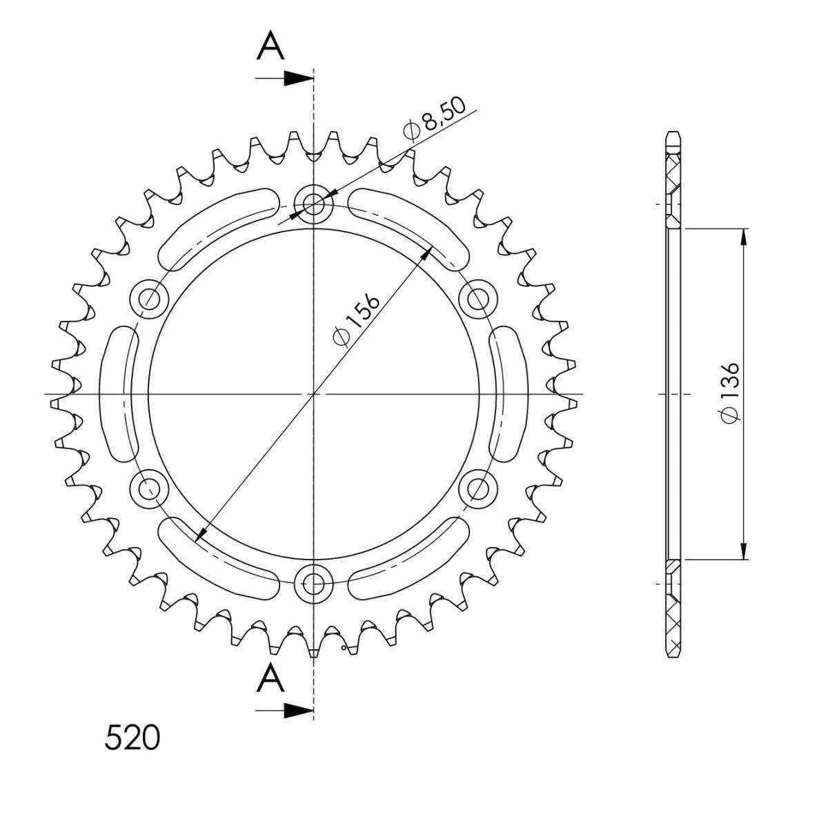 TOP quality 7075-T6 aluminium sprocket with stronger teeth to extend chainkit lifetime.