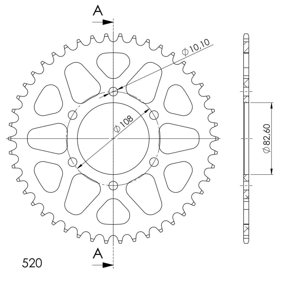 Rear ALU sprocket SUPERSPROX RAL-1526:45-BLK Crni 45T, 520