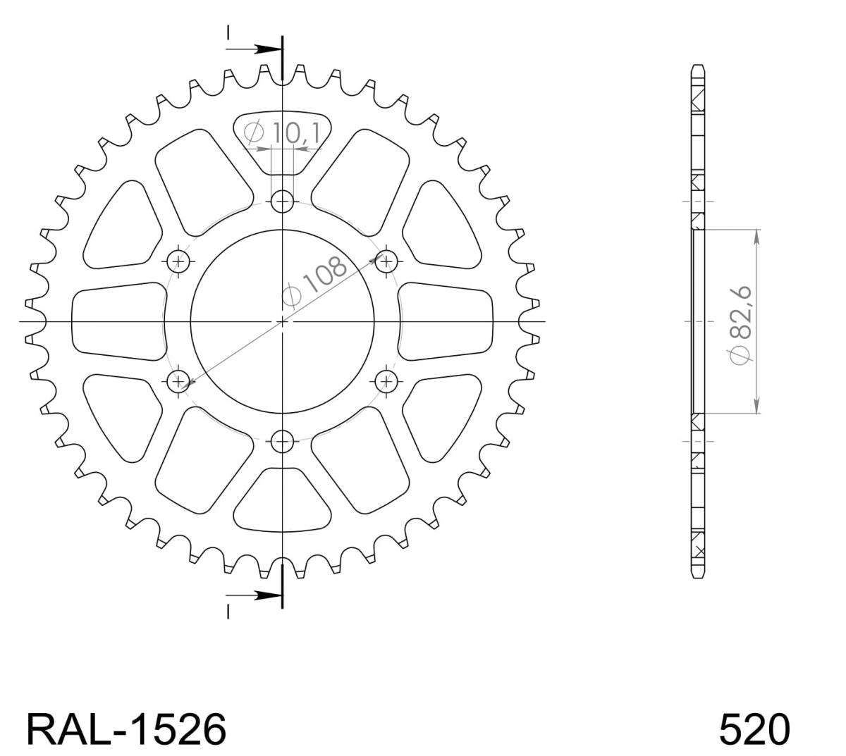 Rear ALU sprocket SUPERSPROX RAL-1526:46-BLK Crni 46T, 520