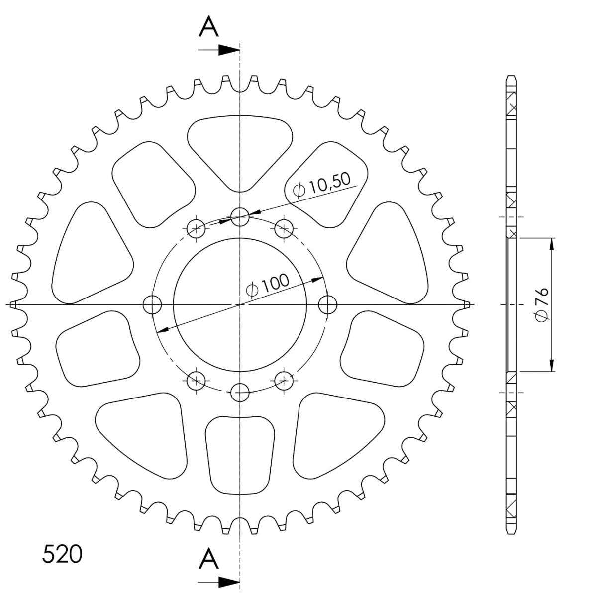 TOP quality 7075-T6 aluminium sprocket with stronger teeth to extend chainkit lifetime.