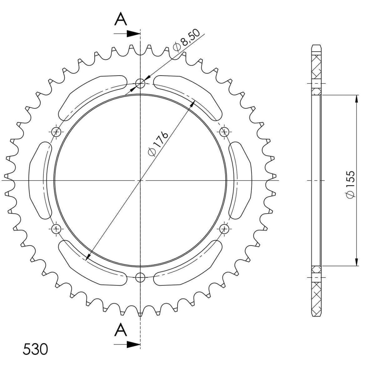 Rear ALU sprocket SUPERSPROX RAL-2011:47-BLK Crni 47T, 530