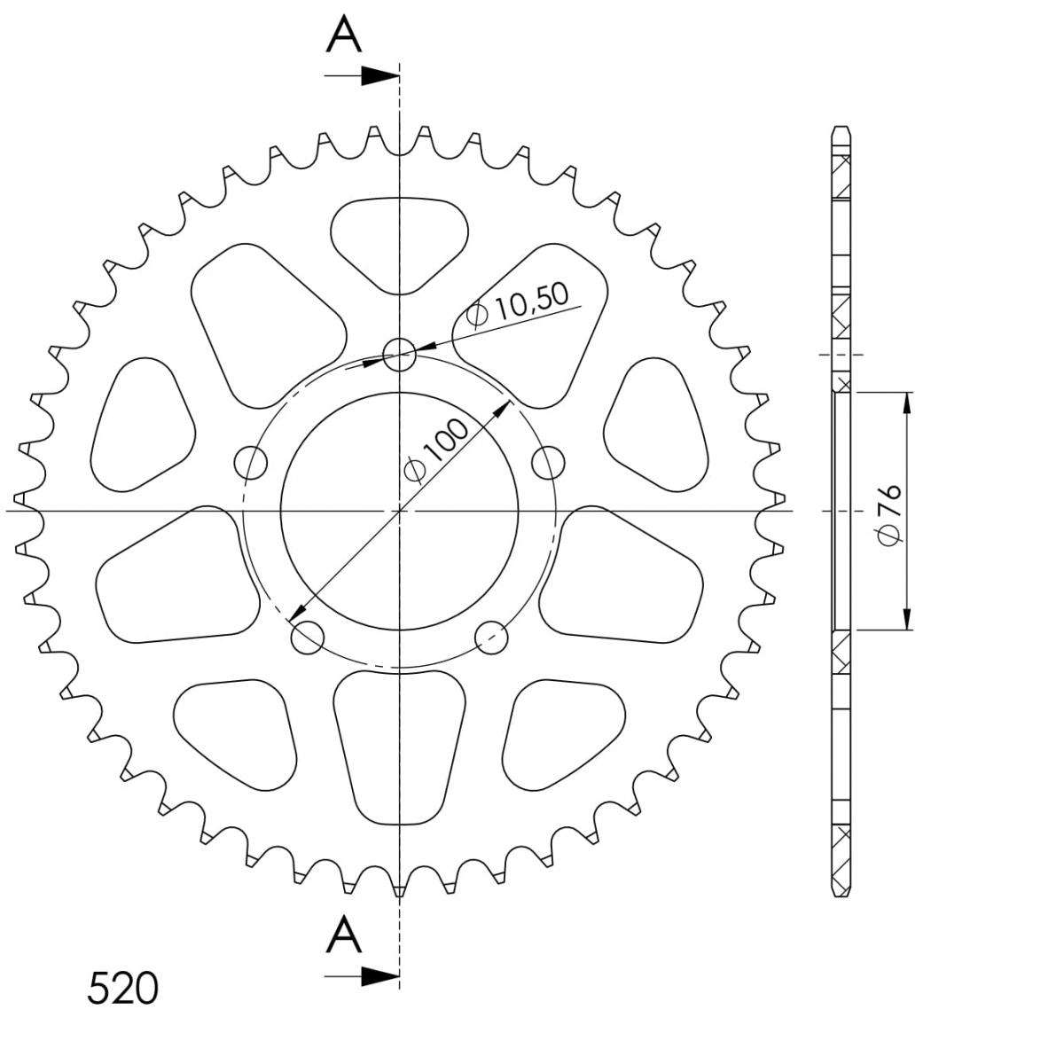 TOP quality 7075-T6 aluminium sprocket with stronger teeth to extend chainkit lifetime.