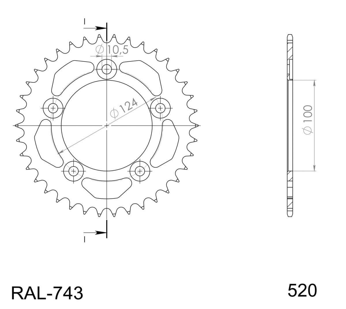 Rear ALU sprocket SUPERSPROX RAL-743:43-BLK Crni 43T, 520
