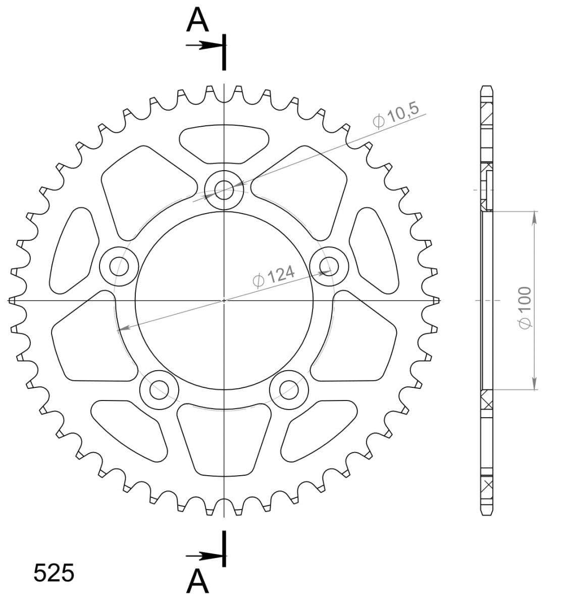 Rear ALU sprocket SUPERSPROX RAL-744:46-BLK Crni 46T, 525