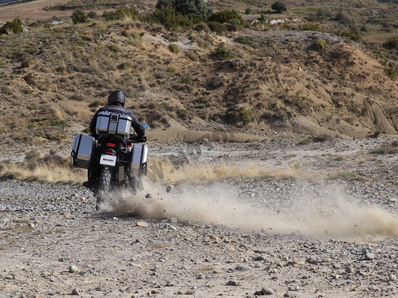 The complete set of cases SHAD TERRA includes aluminum top case TR48 with a capacity of 48L and aluminium left and right case TR36 with a capacity of 36L . The set contains everything you need to mount both suitcases to the motorcycle.