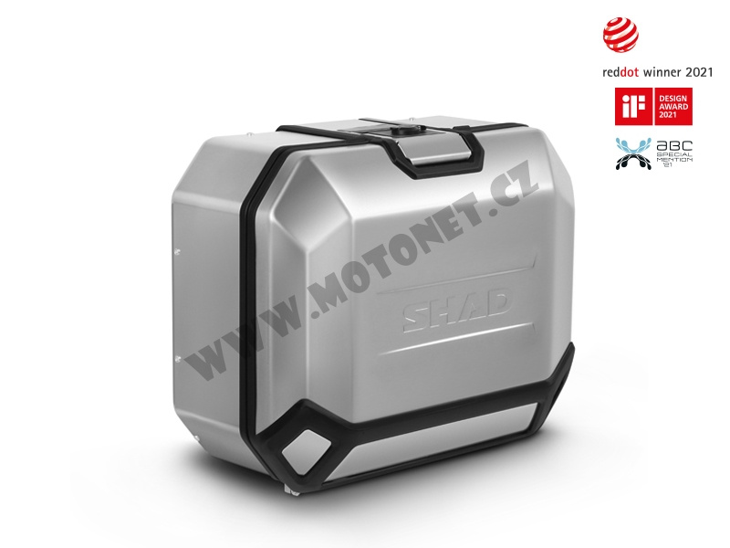The complete set of cases SHAD TERRA includes aluminum top case TR48 with a capacity of 48L and aluminium left and right case TR36 with a capacity of 36L . The set contains everything you need to mount both suitcases to the motorcycle.