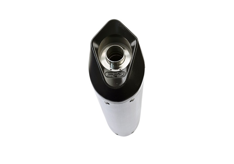 GPR's Furore Nero silencer has a black aluminum body, with avional caps made through CNC machining. It has a ceramic finish that withstands high temperatures, with an elliptical shape that measures 90mm x120mm.