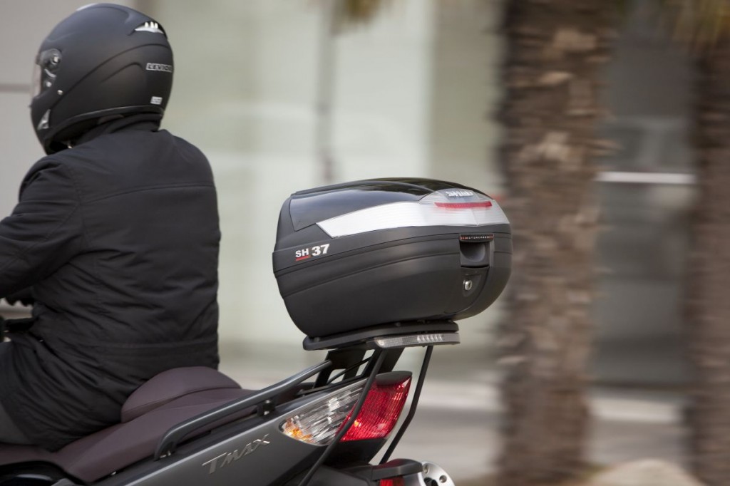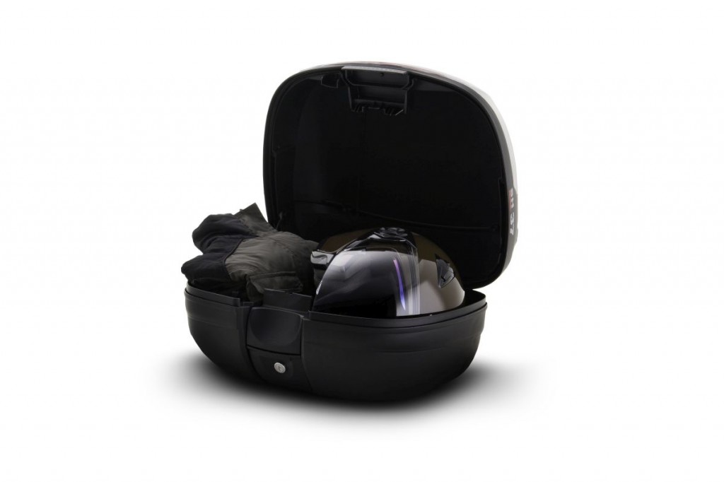 The SH37 is a top case, made with high-quality reinforced polypropylene. The case resists extreme temperatures and protects the internal load both from impacts and crashes, as well as from snow and rain. Its 37-litre capacity ensures space enough to carry two jet helmets or an integral and a jet. With curved shapes and smoked reflector, it's a basic model of SHAD's range. It has the perfect size both to move around the city and to go on longer trips, which allows it to be adapted both to scooters and to medium displacement motorcycles.